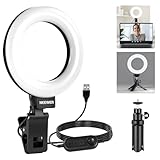- 【Multifunktionales LED Fülllicht mit Clip】 Ausgestattet mit 60 LEDs bietet NEEWER BR60 Ringlicht eine Beleuchtung von bis zu 450Lux bei 0,5m, 3000K-6000K Farbtemperatur und CRI>97. Das Clip On Lampe kann an Smartphones, Laptops, Computern, Desktop Monitoren und Bildschirmen mit einer Dicke von weniger als 1" / 2,5cm montiert werden und enthält ein Mini Stativ für den vielseitigen Einsatz in Makeup, Selfies, Tiktok / Youtube Videoaufnahmen, Facetime, Zoom Anrufen, Videokonferenzen, Vlogging usw