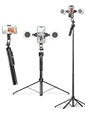 - [3-Wege-Kopf] Das Mobile Tripod ist mit einem stabilen 3-Wege-Kopf ausgestattet und die Tragfähigkeit ist bis zu 2 kg. Mit der Smartphone-Halterung können Sie Ihr Handy flexible vertikal oder horizontal in verschiedenen Winkeln und Positionen platzieren, sodass Sie Fotos & Videos aus idealem Winkel aufnehmen. Sie können auch leichte Kamera an der 1/4"-Gewinde des Handy-Statives montieren. Außerdem verfügt der Kopf über eine Wasserwaage, damit Sie die Stativ-Position kalibrieren können