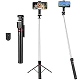 - MULTIFUNKTIONALES DESIGN: Sie können den selfie-stick als normalen selfie-stick, stativ, wechseln Sie mühelos zwischen selfie-stick und stativ und befreien sie ihre hände sein einzigartiges design ermöglicht es ihnen, die handyhalterung abzunehmen und ihn in einen tragbaren handyhalter zu verwandeln. Es eignet sich zum online-lernen oder-arbeiten, kochen und fitness-tutorials, videos ansehen, video-anrufe zu machen, ihr leben zu hause zu erfassen, gruppenfotos mit der familie zu nehmen zu lesen