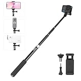 - Mehr Möglichkeiten dank Außergewöhnlicher Vielseitigkeit und Länge: Der aus 7 Teleskopabschnitten bestehende Stab kann auf eine maximale Länge von 114 CM eingestellt werden und übertrifft damit die meisten anderen auf dem Markt erhältlichen Sticks und bietet Ihnen ein großes Sichtfeld. Mit der Kombination aus 180°-Einstellung und 360°-Rotation können Sie mühelos den optimalen Aufnahmewinkel finden und weite Landschaften oder besondere Momente mit Ihren Lieben einfangen.