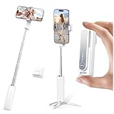 - 【Taschenstativgröße】 Unser kleiner Selfie-Stick für das iPhone wiegt nur 139 g und ist im zusammengeklappten Zustand 12 cm lang. Dieser Selfie-Stick für Android ist leicht und tragbar, stecken Sie ihn einfach in Ihre Tasche. Das Mini-Telefonstativ ist mit einer abnehmbaren Fernbedienung ausgestattet, sodass Sie auch aus der Ferne Fotos aufnehmen können