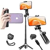- [Einfach zu bedienen und universell kompatibel] - Der Selfie-Stick funktioniert gut mit Handys mit einer Breite zwischen 5,5 und 8,7 cm. Mit der Fernbedienung kannst du mit der Hand, die die Selfie-Stange hält, ganz einfach den Auslöser betätigen. Darüber hinaus kannst du es als Desktop-Telefonständer, für Live-Internet, zum Streamen von TV-Shows usw. verwenden.