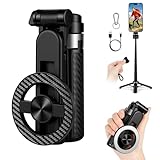 - 【Flexible Aufnahmewinkel】Der magnetische Selfie-Stick verfügt über einen um 180° verstellbaren Hals und einen um 360° drehbaren Gimbal. So wechseln Sie mühelos zwischen Quer-, Hoch- und Untersichtaufnahmen. Ob Panorama-, Weitwinkel- oder Nahaufnahmen – fangen Sie jeden wunderbaren Moment ein und genießen Sie unzählige Möglichkeiten für kreative Videos und Aufnahmen aus verschiedenen Winkeln.