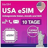 - USA eSIM hat unbegrenzte Daten. Sie können diese Daten in allen 50 Staaten nutzen (außer Alaska). Sie können bis zu 7 GB nutzen, um andere Geräte mit 3G-Geschwindigkeit zu hotspotten. e SIM Amerika nutzt das T-Mobile-Netz.