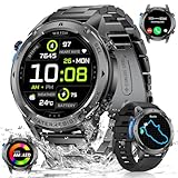 - 🛠【Ergonomic & Military Grade Smart Watch】 This military watches for men is crafted from high-strength stainless steel, featuring a scratch-resistant sapphire glass dial. The smart watch men has passed 12 military-grade tests, ensuring it can withstand extreme environmental challenges (including extreme temperatures, shocks, and scratches), making it durable for various adventurous activities. The mens smart watch with ergonomic design, wearers will experience exceptional comfort during all kinds of activities. The men's smart watch comes with two types of straps, offering both breathability and style.