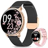 - Mode und Intelligenz am Handgelenk: Die NAIXUES Smartwatch Damen mit einem 1,39" Touchscreen und einer Auflösung von 360*360 sorgt für ein geschmeidiges Gefühl und schützt die Sehkraft von Frauen. Der Körper wiegt nur 29 g, sodass Sie ihn lange Zeit ohne Druck tragen können. Die Armbanduhr Damen wird mit 2 Armbändern geliefert: einem schwarzes Gold Stahlarmband und einem bequemen rosafarbenen Silikonarmband. Sie können sie je nach Outfit wechseln, um Ihre unterschiedliche Schönheit zu zeigen.