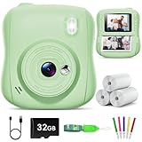 - 【Multifunktionale Kinder Sofortbildkamera】Diese Kinderkamera bietet Sofortdruck, einen 2,0-Zoll-Bildschirm, 1080P-Video, 10-fachen Digitalzoom, Aufhelllicht, Zeitraffer, Serienaufnahmen, lustige Sticker, MP3-Funktion und mehr – sie hat alles! Mit einer vorinstallierten 32-GB-Karte können Tausende von Fotos und Videos gespeichert werden. Sie bringt Kindern mehr Inspiration und Spaß beim Fotografieren und hilft, ihre Kindheit festzuhalten.