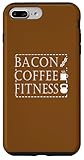 - Dieses Design zeigt die Worte "Bacon Coffee Fitness" in kräftigem Vintage-Stil, begleitet von Speck-Symbolen, einer Kaffeetasse und einer Kugelhantel, die einen lustigen und motivierenden Lebensstil symbolisieren.