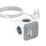 - 6-IN-1 Steckdosenwürfel: Die Steckdosenleiste mit USB-C ist eine All-in-One-Lösung für den gleichzeitigen Anschluss von bis zu 6 Geräten. 4x USB-Ports laden deine Geräte direkt über Kabel, ohne externe Netzteile; die Doppelsteckdosen mit je 3680W versorgen deine Geräte konstant mit Strom