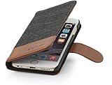 STILGUT Leder-Hülle kompatibel mit iPhone 6s Plus Wallet-Case, Fashion: Storm Grey/Cognac