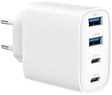 - 【40W Ladegerät mit 4 USB C Ports】Ihr Alleskönner für blitzschnelles Aufladen! Mit Power Delivery 3.0 und Quick Charge 3.0 lädt das 4-fach USB-C Ladegerät bis zu 40W – ideal für bis zu vier Geräte gleichzeitig. Dank intelligenter Stromverteilung erreicht Ihr iPhone in nur 30 Minuten 50% Akku. Perfekt für Multitasker!