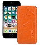 Original Suncase Echt Lederhülle für Apple iPhone 5 / 5S (Tasche mit Rückzugfunktion) in wash-orange