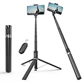 - [Einfach zu bedienen und universell kompatibel] - Der Selfie-Stick funktioniert gut mit Handys mit einer Breite zwischen 5,5 und 8,7 cm. Mit der Fernbedienung kannst du mit der Hand, die die Selfie-Stange hält, ganz einfach den Auslöser betätigen. Darüber hinaus kannst du es als Desktop-Telefonständer, für Live-Internet, zum Streamen von TV-Shows usw. verwenden.