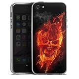 Silikon Hülle kompatibel mit Apple iPhone 5s Case transparent Handyhülle Totenkopf Feuer Schädel