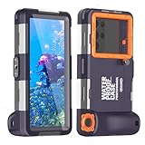 - 【Professioneller Wasserschutz bis zu 15 m Tiefe】Das Gehäuse bietet eine hervorragende Wasserdichtigkeit und wurde über 1000 Mal getestet. Es ermöglicht Tauchgänge bis zu einer Tiefe von 50 Fuß (15 Meter) für bis zu 60 Minuten ohne Undichtigkeiten. Vor dem Tauchen empfehlen wir, die Kamera Ihres Telefons einzuschalten, um mühelos Fotos und Videos aufzunehmen.