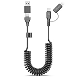 - 【Apple CarPlay & Android Auto】:Coiled Multiple charger cable supports Apple Car Play and Android Auto for simultaneous charging and navigation. Charge whatever devices your family and friends use in the car. All you need to take on the road is this one charging cable.