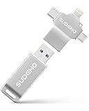 - 4-in-1 Design mit MFi-Zertifizierung: Der SUDEHO USB Stick vereint vier Anschlüsse in einem Gerät: USB 3.0, Lightning, Micro-USB und USB-C (inklusive Adapter). Dank offizieller MFi-Zertifizierung ist er vollständig kompatibel mit iPhones, iPads, Android-Geräten, PCs und Macs. Ideal für den plattformübergreifenden Datentransfer – ganz ohne Cloud oder zusätzliche Adapter.