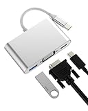 - 【Vielseitigkeit und Komfort】 Der USB C zu VGA Adapter ist ein Alleskönner mit drei Anschlüssen: einem USB-A-Anschluss, einem VGA-Anschluss und einem USB C-Ladeanschluss. Sie können Ihre Geräte aufladen und Daten gleichzeitig übertragen.(Bitte beachten Sie: Der VGA-Anschluss kann nur Video-, aber keine Audiosignale übertragen!!!)