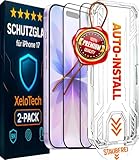 - PERFEKTE POSITIONIERUNG : Mit der bekannten XeloTech Schablone wird der Glasschutz automatisch perfekt auf dem iPhone ausgerichtet. In der Packung sind 2x premium Gläser und 1x Schablone zur Positionierung mit Zubehör.