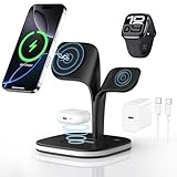 - 【3-in-1 Ladestation für Apple Watch und iPhone】Diese schnelle magnetische Ladestation kann gleichzeitig Ihr iPhone, Ihre Apple Watch und Ihre AirPods laden. Es dauert nur etwa 1,5 bis 2 Stunden, um das iPhone 17 und die Apple Watch S11 vollständig aufzuladen (andere Marken benötigen dafür bis zu 3,5 Stunden). Das MagSafe-Ladegerät ist kompatibel mit allen iPhone 12–17, Apple Watch Series 2–11/SE/Ultra, AirPods Pro/Pro 2 und AirPods 2/3/4 ANC