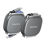 - 【Blitzschnelles Laden】 Das VisionSync Einziehbare USB C auf Lightning Kabel bietet bis zu 27 W Ladeleistung und Datenübertragungsraten von 480 Mbit/s – Ihr iPhone 14 ist mit einem 30W PD Ladegerät oder Netzteil in nur 30 Minuten zu 58 % geladen. Ideal für iPhones und iPads mit Lightning Anschluss, die unterwegs schnell geladen werden müssen.