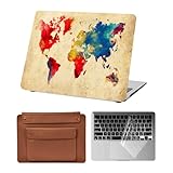 - 【Lieferumfang】Ein Schutz Laptop Cover set für Apple Macbook-Laptops: Eine Hartschale hülle mit Weltkartenmotiv, eine durchsichtige Tastaturabdeckung und eine schokoladenbraune Laptoptasche aus Leder.