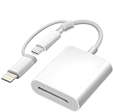 - 『Dual Card Slot』: Der SD-Kartenleser ist sowohl mit SD- als auch mit Micro-SD-Speicherkarten kompatibel und unterstützt iPhone und iPad. Es ist einfach, Fotos oder Videos von SD-Karten direkt auf das iPhone oder iPad herunterzuladen und sie jederzeit mit Freunden und Familienmitgliedern zu teilen.