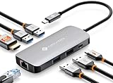 - 7-in-1-USB-C-Hub: Ausgestattet mit 4K@30Hz hd-Ausgang, 100 W PD-Aufladung, 1 Gbit/s RJ45-Ethernet-Verbindung, zwei USB-3.0-Anschlüssen und SD/TF-Kartenleser, löst perfekt das Problem des Kurzschlusses Ihres Laptops. Der Newmight MacBook-Adapter verwandelt Ihr Gerät in eine Mini-Workstation, bietet Ihnen einen eleganten Arbeitsplatz. Plug-and-Play, keine Software, Treiber erforderlich.