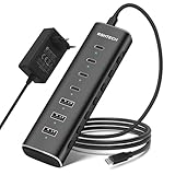 - Schnellere Datenübertragung: Der RSHTECH Powered USB-C Hub verfügt über sieben USB 3.2-Anschlüsse, die Übertragungsgeschwindigkeiten von bis zu 10 Gbit/s unterstützen, wodurch schnelle Dateiübertragungen ermöglicht und die Arbeitseffizienz gesteigert werden. Hinweis: USB-C-Anschlüsse unterstützen nur Datenübertragung und Standard-1,5-A-Laden. Power Delivery (PD)-Laden und Videoausgabe (DisplayPort Alt Mode) werden nicht unterstützt.