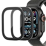 - 【Doppelschichtiger Schutz】Der displayschutz verwendet 9H gehärtetes glas und einen titanlegierungsrahmen, um ihre Apple Watch Ultra 2 und ultra vor kollisionen, stürzen und kratzern im alltag zu schützen, was die kosten für den ersatz der iwatch erheblich reduziert