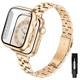 - 【Elegantes und Klassisches Aussehen】Dieses Apple Watch Armband verwendet ein innovatives, schlankeres Banddesign auf der klassischen Form des traditionellen Edelstahlarmbands, was es elegant, aber nicht klobig erscheinen lässt und besser zu den Handgelenken von Frauen passt. Wählen Sie dieses iWatch Armband mit Schutzhülle, um Ihren femininen Charme zu zeigen.