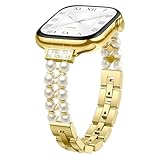 - 【Luxuriöses Schmuckdesign】SOLOLUP Dieses luxuriöse iWatch-Uhrenarmband Frauen aus Metall verfügt über ein Design im Schmuckstil.Funkelnde Perlen gepaart mit einem mit Diamanten Sie bei einer Cocktailstunde oder Party unter den Lichtern noch mehr funkeln.Es fügt sich nahtlos in eine Vielzahl von Outfits ein und dient nicht nur als Uhrenarmband,sondern auch als auffälliges Accessoire.Die exquisite Armband im Armbandstil macht Ihre iwatch noch auffälliger und erntet begeisterte Kritiken