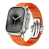 - 【Robuster und dennoch aktiver Look】: Farblich abgestimmte Metallanschlüsse ergänzen das Edelstahlgehäuse der Apple Watch Ultra. Der Metallanschluss für Apple Watch Armbänder für Männer besteht aus langlebigem Edelstahl und verfügt über orangefarbene Akzente, die Ihre Apple Watch Ultra ergänzen. Flexible, gedrehte Metallteile ermöglichen es dem Band, sich Ihrer Haut anzupassen.