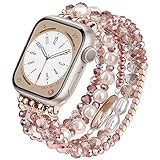 - 【Einzigartiger Stil】Das nettes Apple Watch 11 Armband aus hochwertigen glatten Perlen und funkelnden Kristallen, das iPhone Uhrenarmband wird langsam von erfahrenen Handwerkern poliert. Eleganter Look ist perfekt für Frauen.