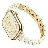 - 【Luxuriöses Schmuckdesign】SOLOLUP Dieses luxuriöse iWatch-Uhrenarmband Frauen aus Metall verfügt über ein Design im Schmuckstil.Funkelnde Perlen gepaart mit einem mit Diamanten Sie bei einer Cocktailstunde oder Party unter den Lichtern noch mehr funkeln.Es fügt sich nahtlos in eine Vielzahl von Outfits ein und dient nicht nur als Uhrenarmband,sondern auch als auffälliges Accessoire.Die exquisite Armband im Armbandstil macht Ihre iwatch noch auffälliger und erntet begeisterte Kritiken