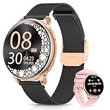 - [Stil und Intelligenz vereint] RUXINGX Smartwatch Damen verfügt über ein 1,27-Zoll-fingerabdruckresistentes Touchdisplay mit einer ultrahohen Auflösung von 390*390. Sie wird mit 2 austauschbaren Armbändern geliefert – einem eleganten Metallgeflechtband und einem bequemen Silikonband. Über die zugehörige App stehen mehr als 200 ansprechende Zifferblatt-Designs zur Auswahl, und durch Hochladen persönlicher Fotos lässt sich die Oberfläche individuell anpassen. So bleibt Ihr Look stets frisch.