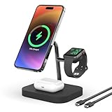 - 3-in-1-Ladestation apple with adapter: Dieses schnelle 3-in-1-magnetische drahtlose Ladegerät kann iPhone, Apple Watch und AirPods gleichzeitig aufladen. Die magnetische Ladestation ist nur geeignet für iPhone 17/16/15/14/13/12 Serie, für Apple Watch 11/10/9/8/7/6/5/4/3/2/SE/Ultra 2, AirPods Pro, Airpods 2/3 /4(mit drahtlosem Ladehülle)