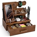 - 2-in-1 Holz Dockingstation mit abnehmbarem Handyhalter – Vielseitiger Organizer für Nachttisch & Schreibtisch, der mit einem abnehmbaren Handyhalter maximale Flexibilität bietet