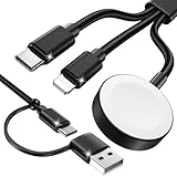 - 【4-in-1 iPhone Watch Ladegerät】: Dieses Apple Watch Multi iWatch Ladekabel hat 4 verschiedene Anschlüsse, einschließlich Beleuchtung/Typ C/Micro USB und iWatch Ladegerät. Es unterstützt das Aufladen von vier Geräten zur gleichen Zeit.