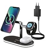 - 【3-in-1 Ladestation für Apple Watch und iPhone】Diese schnelle magnetische Ladestation kann gleichzeitig Ihr iPhone, Ihre Apple Watch und Ihre AirPods laden. Es dauert nur etwa 1,5 bis 2 Stunden, um das iPhone 17 und die Apple Watch S11 vollständig aufzuladen (andere Marken benötigen dafür bis zu 3,5 Stunden). Das MagSafe-Ladegerät ist kompatibel mit allen iPhone 12–17, Apple Watch Series 2–11/SE/Ultra, AirPods Pro/Pro 2 und AirPods 2/3/4 ANC