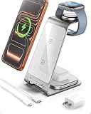 - 【3-in-1 magnetisches kabelloses Ladegerät】Die weiterentwickelte, sichere Magnetladestation unterstützt das gleichzeitige Laden von iPhone, iWatch und AirPods. So haben Sie Schluss mit dem Kabelsalat und können Ihren Schreibtisch aufräumen. Die magnetische Saugkraft ist geeignet für iPhone iPhone 17/17 Air/17 Pro/17 Pro Max/16/15/15 Pro/15 Plus/15 Pro Max/14/14 Pro/14 Plus/14 Pro Max. Sie ist auch kompatibel mit iWatch10/9/8/7/6/5/4/3/2/SE/Ultra/Ultra 2, für AirPods 2/3/4/Pro/Pro 2 (Hinweis: Für AirPods 2/3/4 gibt es 2 Versionen, funktioniert nur mit kabellosem Ladecase, unterstützt nicht das Ladecase A3058, A2897, A1602).