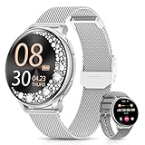 - [Stil und Intelligenz vereint] RUXINGX Smartwatch Damen verfügt über ein 1,27-Zoll-fingerabdruckresistentes Touchdisplay mit einer ultrahohen Auflösung von 390*390. Sie wird mit 2 austauschbaren Armbändern geliefert – einem eleganten Metallgeflechtband und einem bequemen Silikonband. Über die zugehörige App stehen mehr als 200 ansprechende Zifferblatt-Designs zur Auswahl, und durch Hochladen persönlicher Fotos lässt sich die Oberfläche individuell anpassen. So bleibt Ihr Look stets frisch.