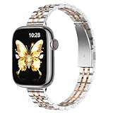 - Kompatibilität: Perfekt für Apple Watch Series 11/10 (42mm), Series 9/8/7 (41mm), SE3/SE2/SE/6/5/4 (40mm) und Series 3/2/1 (38mm). Das Schlank Gliederarmband (0,55 Zoll breit und 0,13 Zoll Thickness) eignet sich für schmalere weibliche Handgelenke von 5,31 "- 7,68" (135-195mm)