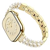 - 【Luxuriöses Schmuckdesign】SOLOLUP Dieses luxuriöse iWatch-Uhrenarmband Frauen aus Metall verfügt über ein Design im Schmuckstil.Funkelnde Perlen gepaart mit einem mit Diamanten Sie bei einer Cocktailstunde oder Party unter den Lichtern noch mehr funkeln.Es fügt sich nahtlos in eine Vielzahl von Outfits ein und dient nicht nur als Uhrenarmband,sondern auch als auffälliges Accessoire.Die exquisite Armband im Armbandstil macht Ihre iwatch noch auffälliger und erntet begeisterte Kritiken