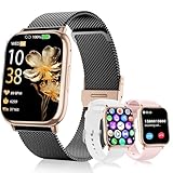 - 【Bluetooth-HD-Anrufe und intelligente Echtzeit-Benachrichtigungen】: Dank fortschrittlicher Bluetooth 5.3-Technologie lässt sich diese Smartwatch für Damen nahtlos mit Ihrem Smartphone verbinden. Sie müssen Ihr Telefon nicht mehr hervorholen, sondern können Anrufe direkt von Ihrem Handgelenk aus tätigen und entgegennehmen und erhalten gleichzeitig Echtzeit-Benachrichtigungen von sozialen Plattformen wie WhatsApp, Facebook und Instagram – so verpassen Sie auch während Besprechungen oder beim Training keine wichtigen Nachrichten mehr. Der integrierte KI-Sprachassistent unterstützt darüber hinaus die Sprachsteuerung und bietet so ultimativen Komfort für den Alltag