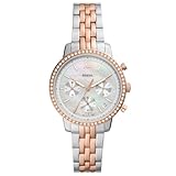 Fossil Riley Watch für Damen, Quarz-Chronographenwerk mit Edelstahl- oder Lederarmband