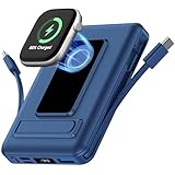 - 【6-IN-1 Power Bank für Alle Geräte】Unser powerbank mit 3 eingebauten Kabeln (Typ-C, ios, Micro), 1*USB A-Anschluss, 1*USB C-Anschluss und magnetisches kabelloses Ladegerät für Apple Watch, ermöglicht es Ihnen, bis zu 6 Geräte auf einmal aufzuladen, wodurch die Notwendigkeit, verschiedene Kabel zu tragen, entfällt und bietet eine bequeme Ladelösung für Ihren geschäftigen Lebensstil. Weitgehend kompatibel mit der iPhone-Serie, Android-Geräten, Tablets, Smartwatches und weiteren USB-Geräten.