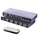 - HDMI Switch 5 in 1 out: Mit diesem 8k-HDMI-Switch können Sie bis zu fünf HDMI-Geräte – wie PS5, Xbox, Nintendo Switch, Roku und Laptops – an ein einziges Display anschließen. Mit der mitgelieferten Fernbedienung oder der manuellen Taste können Sie mühelos zwischen Spielen, Filmen und Präsentationen wechseln. Fünf LED-Anzeigen zeigen deutlich die aktive Quelle an, wodurch sich dieser 4k-HDMI-Splitter ideal für Home Entertainment, Bürobesprechungen und Konferenzräume eignet