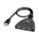 - 【Plug & Play】- Keine Treiberinstallation erforderlich. 3 Umschaltmethoden: automatische Umschaltung auf offene Gerätequelle, Umschaltung per Infrarot-Fernbedienung, manuelle Umschaltfunktion. 3 LED-Anzeigen repräsentieren 3 Eingabegeräte, Sie können deutlich erkennen, welches HDMI-Gerät gerade läuft
