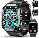 - 【Militärische Qualität & 30 Tage Batterielaufzeit】 Das Gehäuse der smartwatch herren militär besteht aus aerospace-grade Aluminiumlegierung und hat erfolgreich 12 militärische Tests bestanden. Sie ist robust, langlebig, wasser- und staubdicht und kann allen extremen Bedingungen standhalten. Die smart watch herren verfügt über einen hochdichten Lithium-Ionen-Akku, der Ihnen 30 Tage Standby-Zeit, 7 Tage normale Nutzung und eine Aufladezeit von nur 1,5 Stunden bietet.